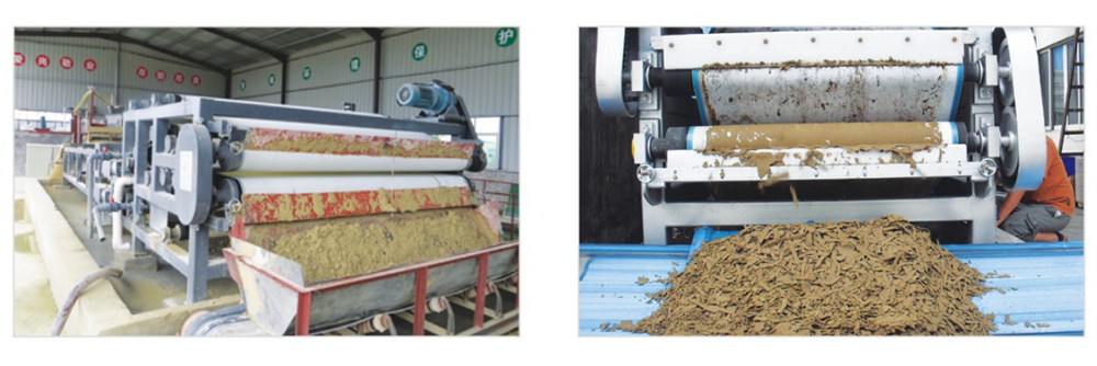 污泥脫離中壓區(qū)后就進入高壓區(qū),污泥在此區(qū)內受到1~3組對夾輾(或帶)擠壓,經(jīng)過擠壓后體積大幅收縮,污泥內的間隙游離水被充分擠出,此時,形成含固率較高的濾餅。重力濃縮脫水區(qū),污泥經(jīng)布料斗均勻送入濾網(wǎng),隨著濾帶向前運行,游離態(tài)的水在自重作用下通過足夠長的重力自由脫水區(qū)流入接水槽,重力脫水段也可以說是高度濃縮段,主要作用是脫去污泥中的大部分自由水及間隙水,合污泥的流動性減小,便于污泥在濾網(wǎng)上的較厚堆積,增強污泥結壓榨的承受力。